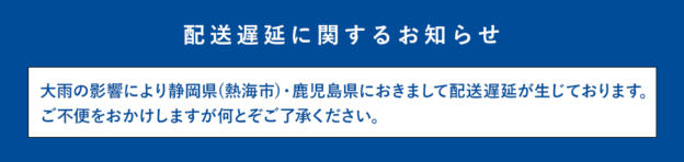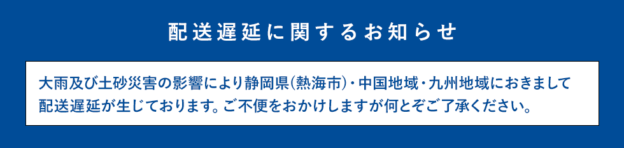 2021年7月 大雨の影響による配送遅延のお知らせ(静岡県)