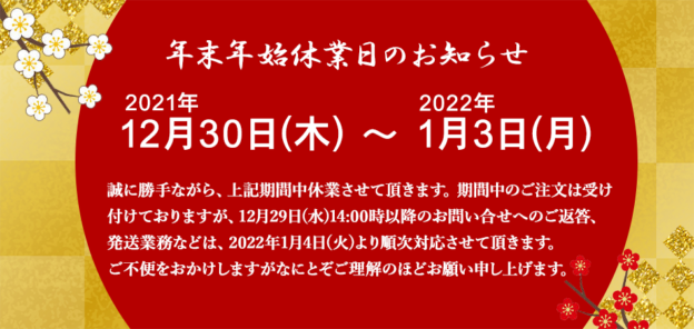 年末年始休業のお知らせ